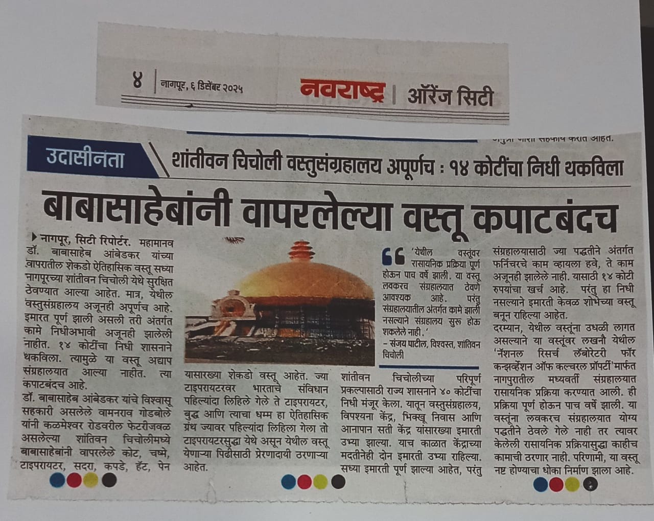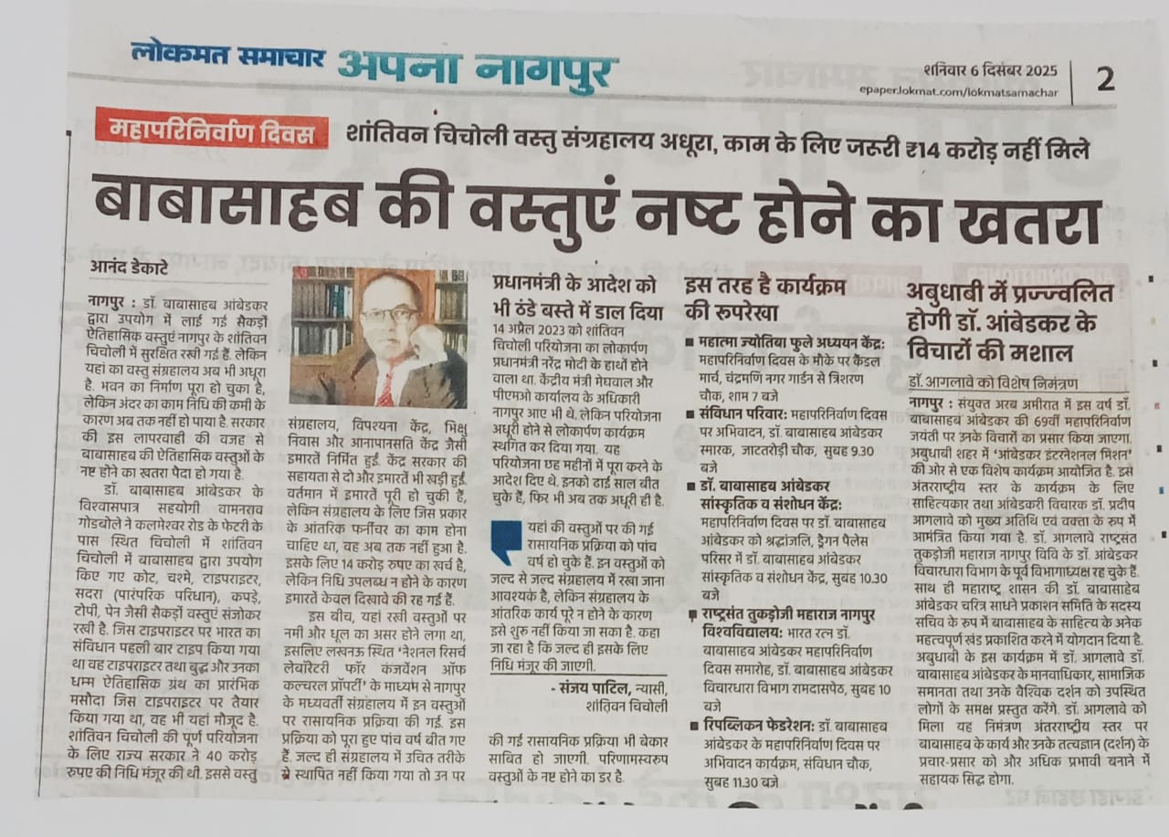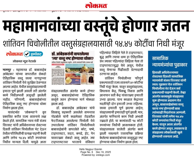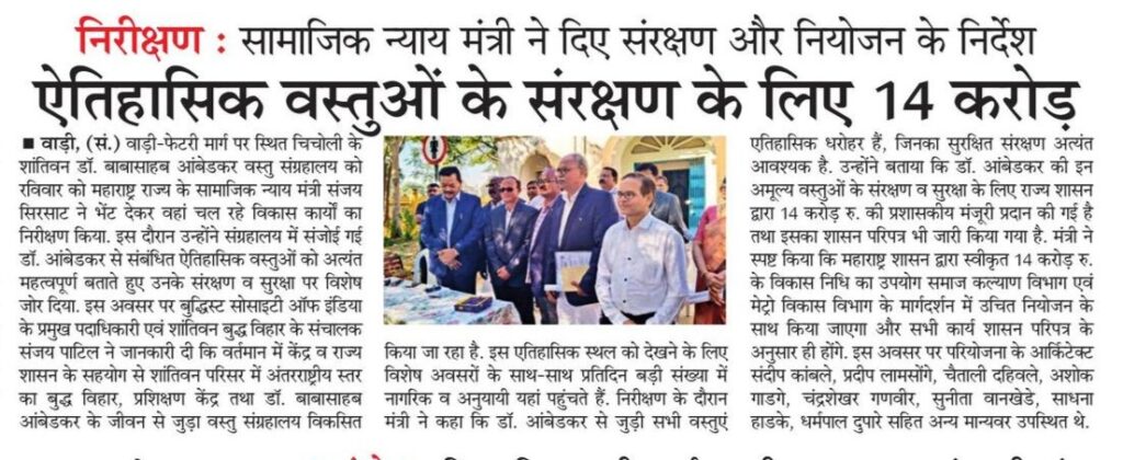 बाबासाहेबांच्या वस्तूंचे जतन करण्यासाठी १४ कोटीस मान्यता