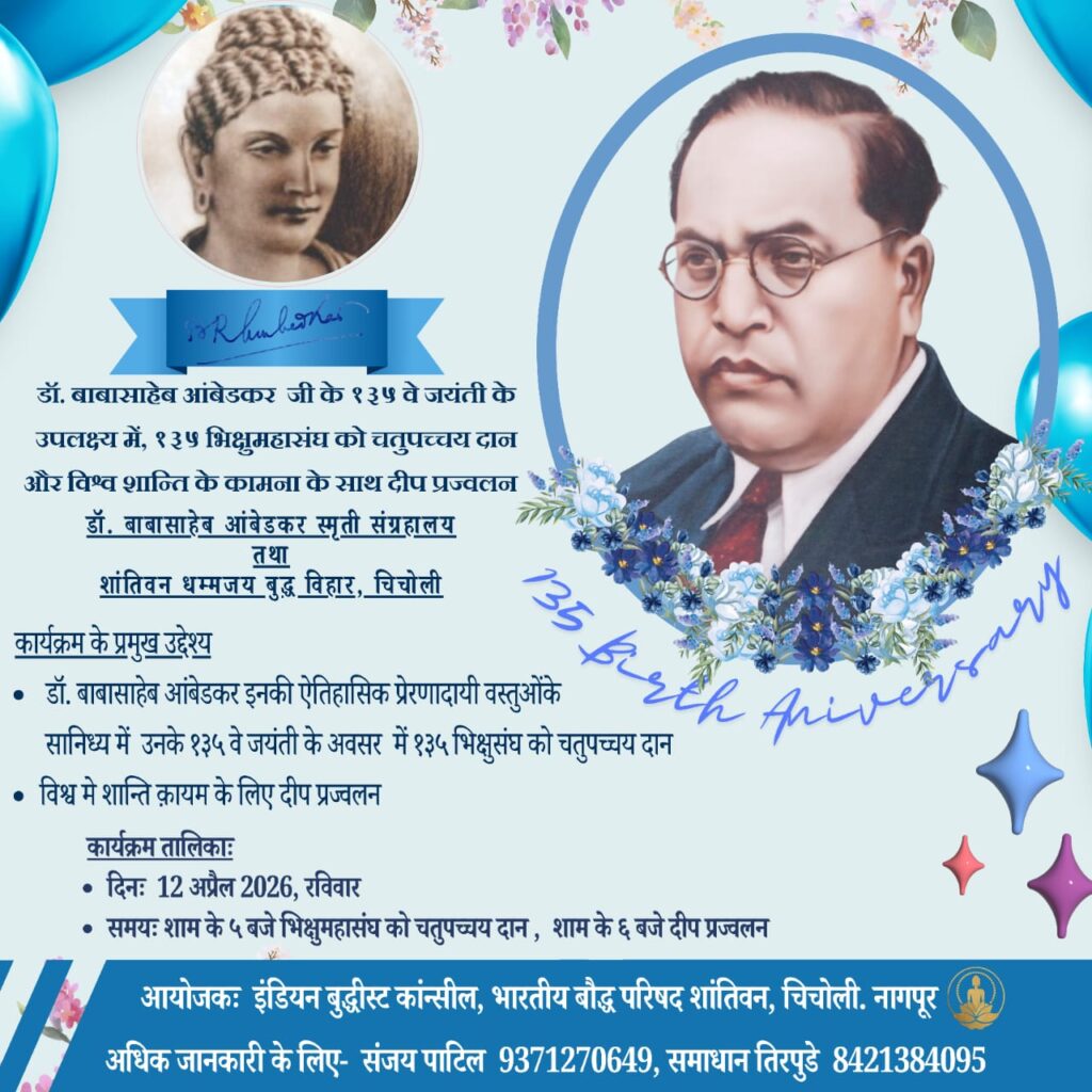 डॉ. बाबासाहेब आंबेडकर जी के १३५ वे जयंती के उपलक्ष्य में, १३५ भिक्षुमहासंघ को चतुपच्चय दान और विश्व शान्ति के कामना के साथ दीप प्रज्वलन